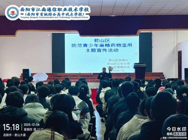 為切實(shí)加強(qiáng)青少年毒品預(yù)防教育,提升學(xué)生識毒、防毒、拒毒意識與能力,12月4日,君山區(qū)禁毒辦攜手君山區(qū)公安分局禁毒大隊(duì)、君山區(qū)禁毒協(xié)會(huì),共同走岳陽市江南學(xué)校開展主題鮮明、形式多樣的禁毒宣傳活動(dòng),為全校師生筑起一道堅(jiān)實(shí)的“無毒”青春防線。